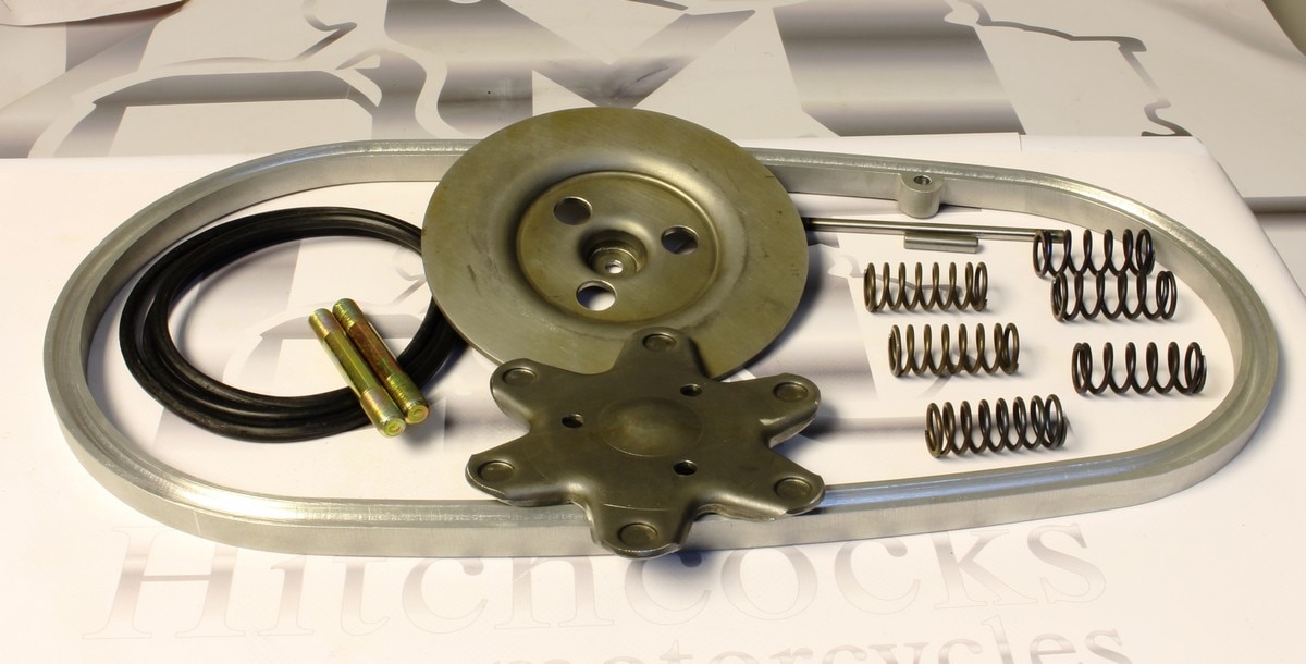 This is a kit to move the position of the 6 clutch springs so that they are directly over the clutch plate friction material. This distributes the spring pressure to where it is most beneficial and therefore the clutch is less prone to slip or drag. It is supplied with a chaincase spacer and seal, clutch pressure plate, end plate, springs etc.