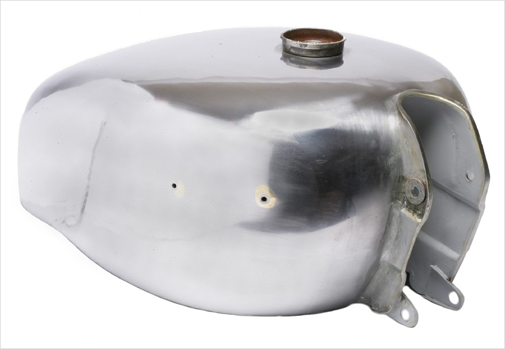 This is an Indian made copy of the large capacity petrol tank (approx. 20 litres) which was fitted to the bigger Royal Enfield twins in the 1950's and 1960's. We can offer this as a totally bare metal tank without any fixings and as the bare tank but with the following fixtures and fittings: tank fixings, knee grips, badges, petrol tap and tank cap etc. It will fit with the standard Indian Enfield seats fitted to the non-EFI models.