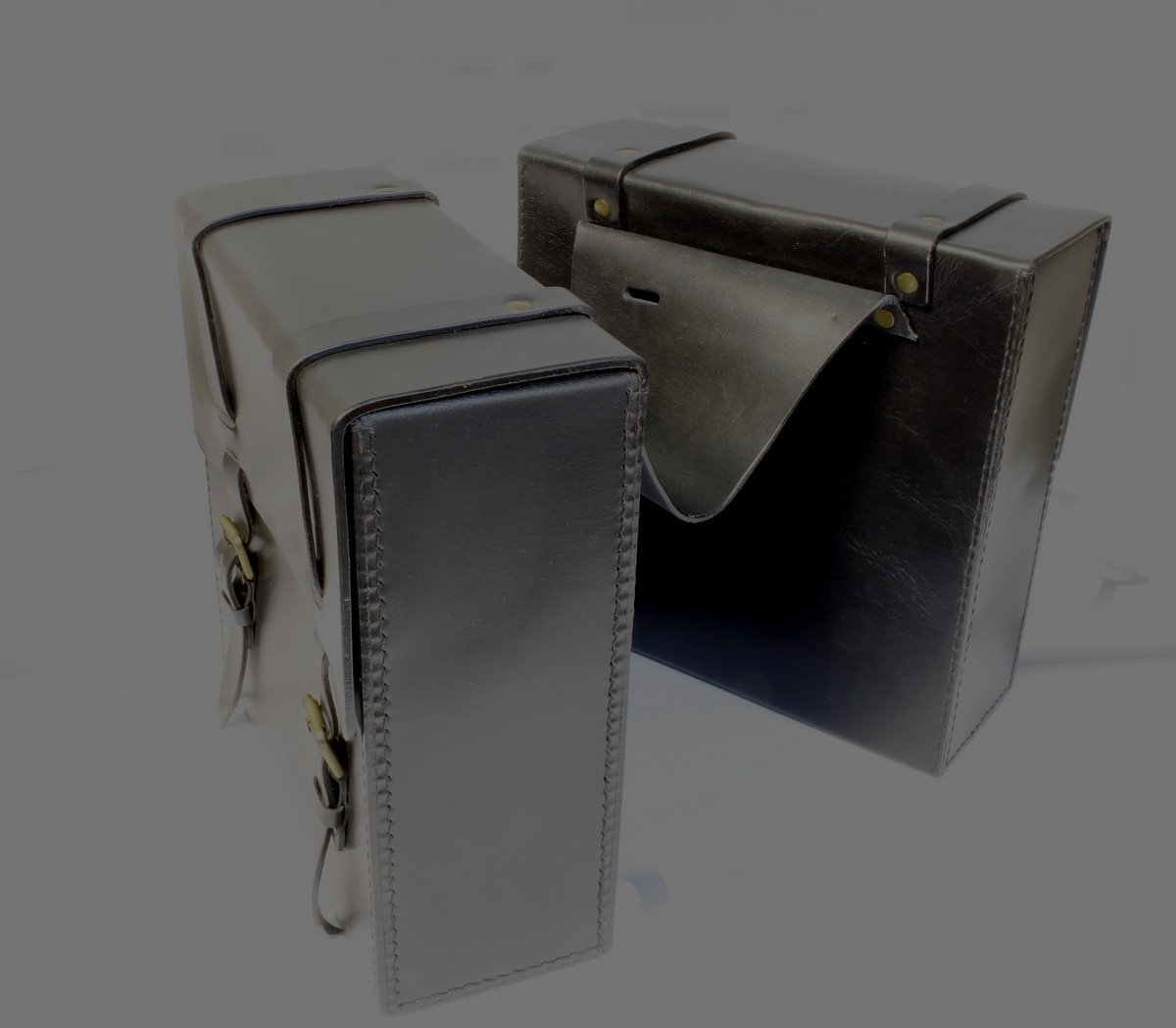 A leather, throw-over style bag which fits over the rear mudguard or seat. They are well made from thick black hide and are available either, with or without "Royal Enfield" embossed into the flap.