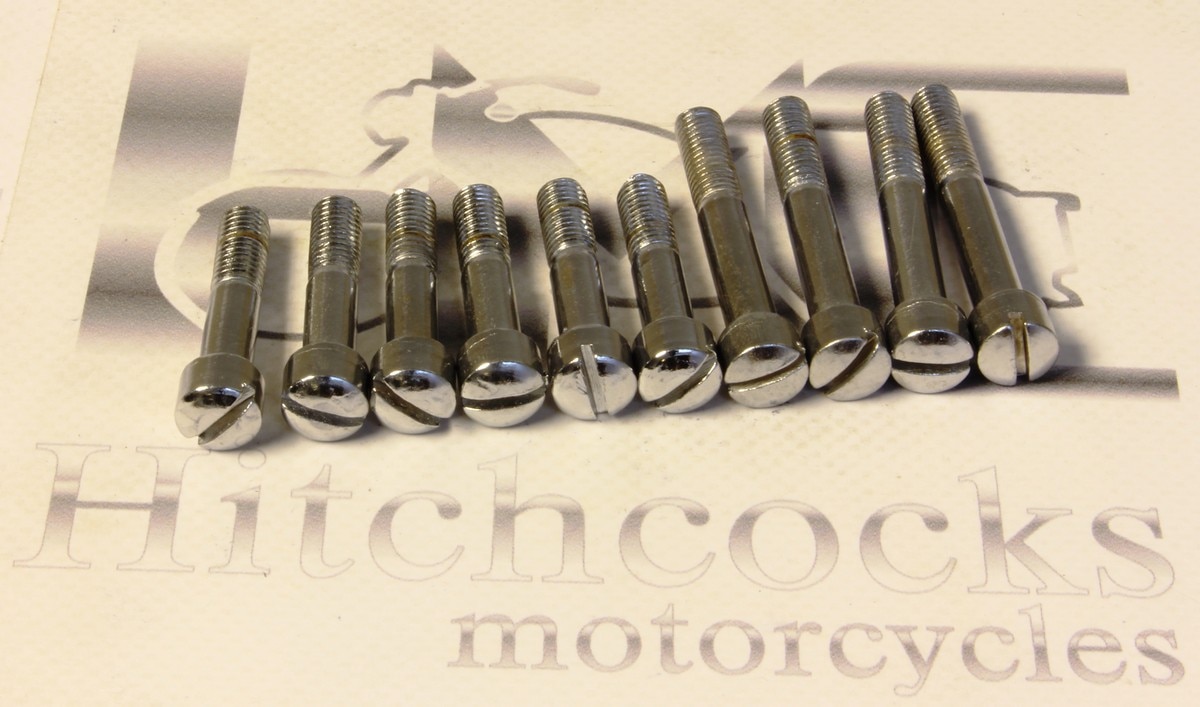 A set of 10 plated slotted screws suitable for the timing cover. We have sets available for all Bullets